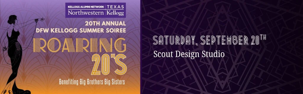 Join us at the 20th Annual Kellogg DFW Kellogg Summer Soiree on Saturday, September 20th! Hosted By Kellogg DFW Alumni. The Annual Kellogg DFW Alumni Summer Soiree is roaring into its 20th year- two decades of forgoing community, connections and purpose across the Metroplex. The September, step into the glamor of the Roaring 20’s with libations, bites and celebrations.