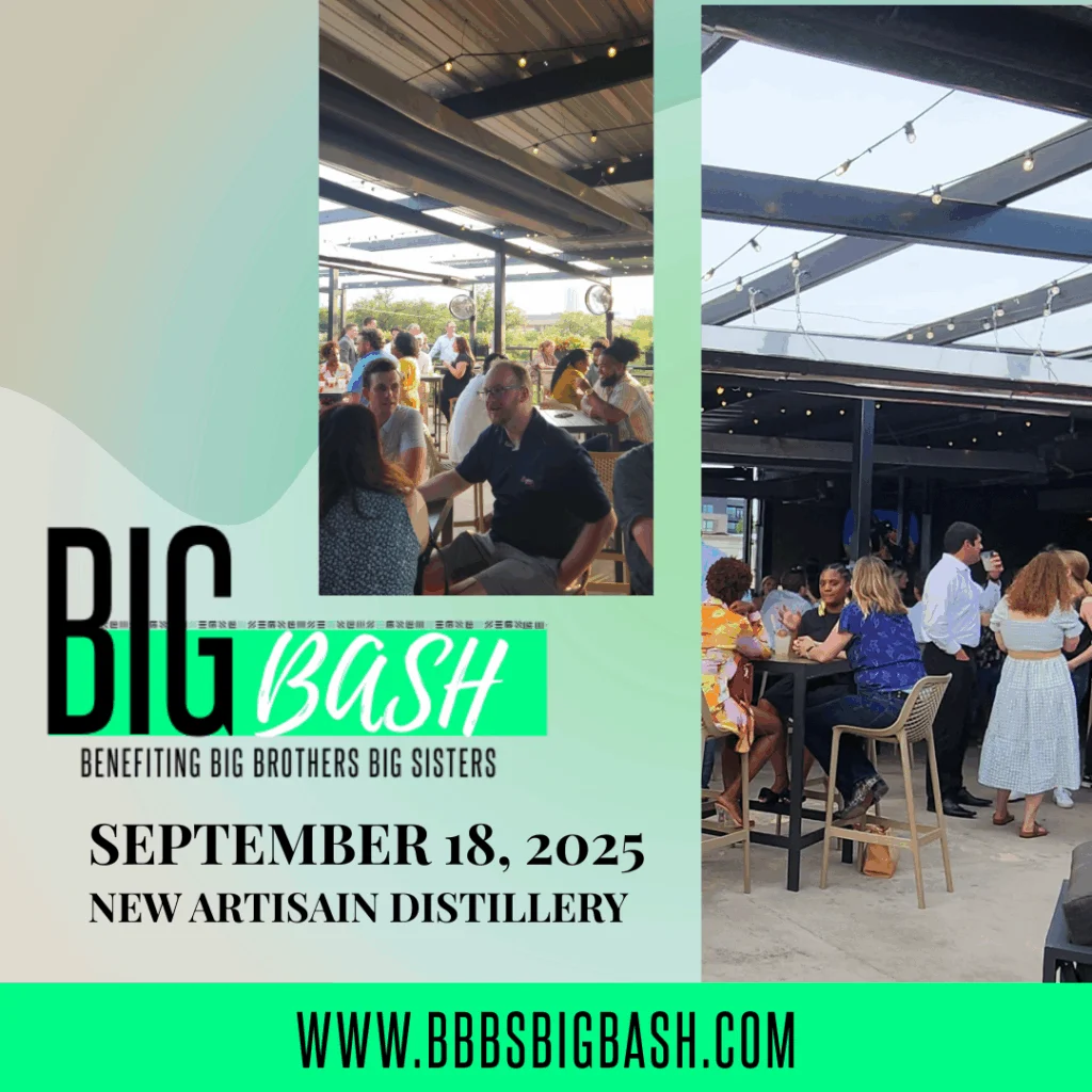 Support Big Brothers Big Sisters at the 2025 Big Bash hosted at New Artisan Distillery in Dallas. Bring your friends to enjoy a fun evening networking and supporting Big Brothers Big Sisters. Proceeds from this event will benefit one-to-one mentoring across Greater Dallas.