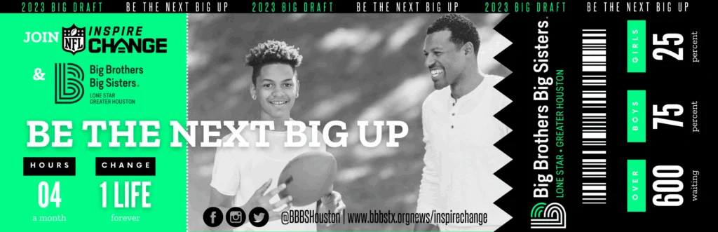 While the NFL is drafting the next generation of players, Big Brothers Big Sisters and the Houston Texans are calling for the next generation of positive mentors to inspire change in Greater Houston.